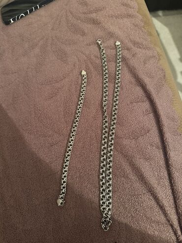 TƏCİLLİ PUL LAZİMDİR SATİLİR 3 BİRLİKDƏ 100AZN SON QİYMƏTDİR.!!! Kişi zərgərlik dəsti - 1 ədəd gümüş rəngli zəncir boyunbağı: klassik yastı/“kurtqa” tipli halqalar, incə-proporsional dizayn, metal...