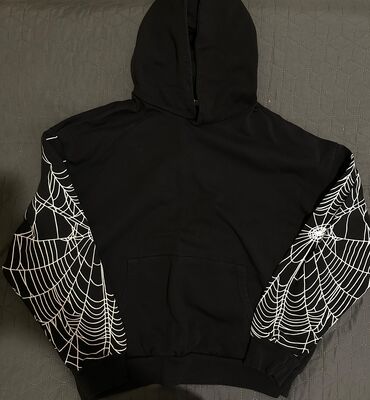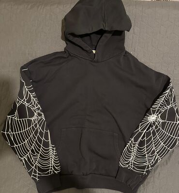 EndirimsizQara kapüşonlu svitşört – qol hissələrində ağ hörümçək toru naxışı