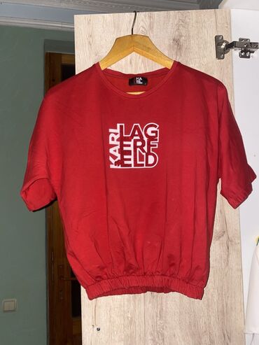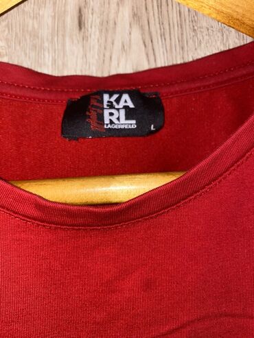 - Üst: qısaqol t-shirt, dairəvi yaxa. Ön hissədə kontrast “KARL LAGERFELD” loqotipi. Aşağı hissəsi rezinli (yığma) kəsim. Etiketdə ölçü: L.