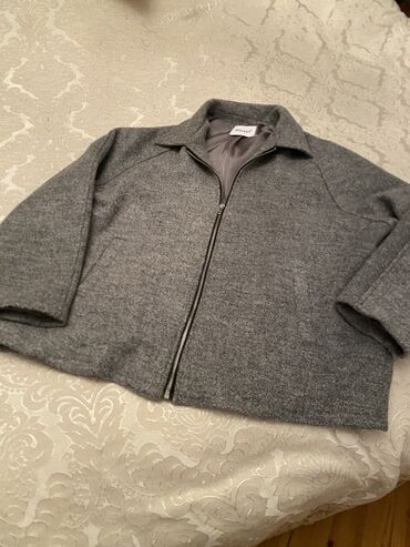 Qadınlar üçün trikotaj kardiqan - Rəng: boz fon üzərində açıq çəhrayı kvadrat naxışlar - Model: düz kəsim, dizə yaxın uzunluq - Yaxalıq: qısa stend-yaxa - Bağlanma: ön hissədə metal qarmaq tipli ü...