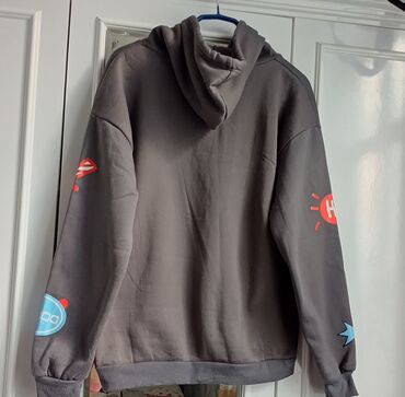Ağ rəngli kapüşonlu svitşot. - Ön hissədə qara-qırmızı qrafiti