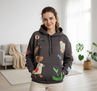 Ağ rəngli kapüşonlu svitşot. - Ön hissədə qara-qırmızı qrafiti tərzində “fuck off” yazısı (qırmızı hissə damcı effekti ilə). - Kapüşon iplidir. - Ön tərəfdə kenguru tipli böyük cib. - Uzunqol, bel...