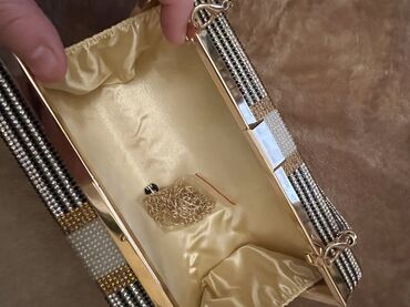 - İç hissə: sərt konstruksiya, telefon, kart, açar və kiçik aksesuarlar üçün ideal axşam çantası ölçüsü