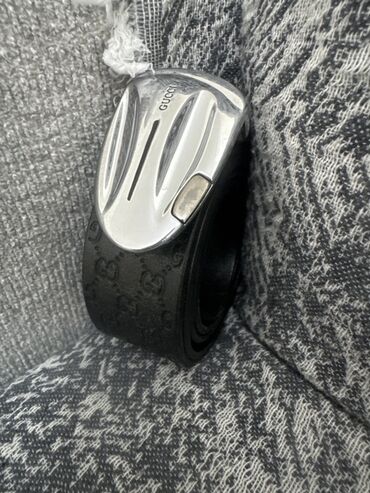 Gucci Gümüşü toqalı qara rəngli uniseks kəmər. Kəmərin səthi kiçik loqolarla naxışlanmışdır. Dəbli dizaynı gündəlik geyim üçün uyğun edir. Gümüşü toqqa kəmərə zərif görünüş verir.