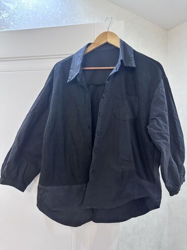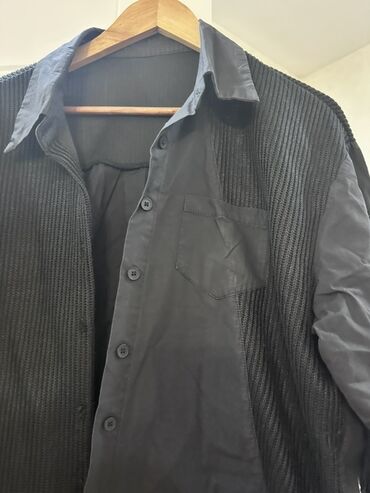 Kişi köynəyi – qara rəngdə, klassik uzunqollu model. Ön hissədə düyməlidir, yaka klassikdir. Sinə tərəfində kiçik metal loqo bəzəyi var. Etiketdə ölçü XL göstərilib. Parçası hamar və yüngül toxumal...