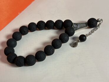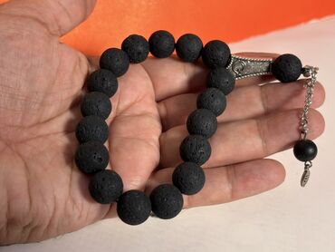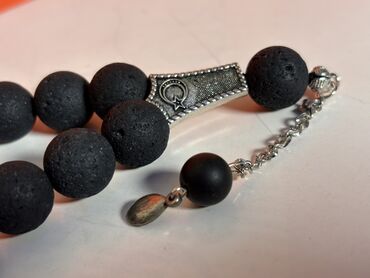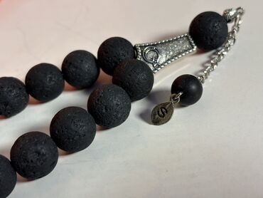 YeniVulkanik Lava daşından hazırlanmış orijinal Təsbeh. Dəyirmi, qara rəngli muncuqları var. Gümüşü rəngdə metal elementlərlə tamamlanmışdır. Metal hissələr təsbehin başında və sonunda yerləşir. Təsbeh rahat tutuş təmin edir.