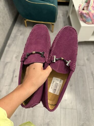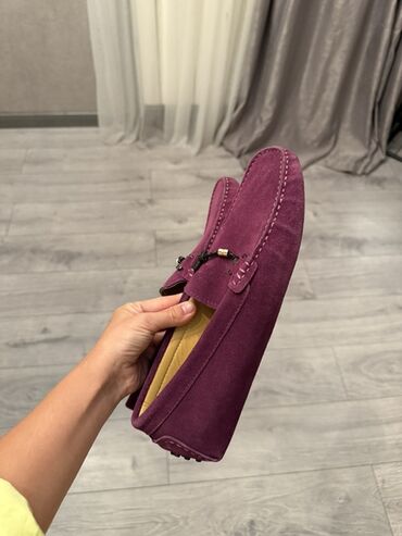 Bənövşəyi rəngdə süet materialdan hazırlanmış uniseks loaferlər. Bu ayaqqabılar, casual geyim tərzi üçün rahat və şık seçim təmin edir. Loaferlər, üzərində metal bəzək detalları ilə tamamlanmışdır. Yüngül və rahat dizaynı ilə gündəlik istifadə üçün uyğundur.yenidir 90 manata alinib