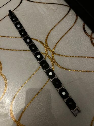 Maqnitli kişi bilərziyi - Material: paslanmayan polad bəndlər və qara keramika/metal lövhəciklər - Rəng: qara və metalik gümüş tonlarının kombinasiyası - Dizayn: düzbucaqlı hissələrdən ibarət segm...Giriş•Qeydiyyat