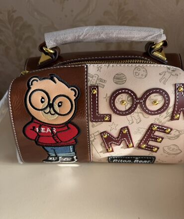 - Ön tərəfdə eynəkli ayı appliqesi və “LOOK ME” yazılı 3D dekor (züngül qızılı pərçimlərlə)