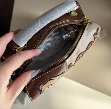 Klassik dizaynlı kiçik çanta – qəhvəyi rəngdə, süni dəri material. Ön hissədə XXII 1980 Moskva Olimpiadasının relyef loqosu yerləşir. Funksional bölmələr: - Yuxarıda fermuarlı kiçik cib - Düyməli q...