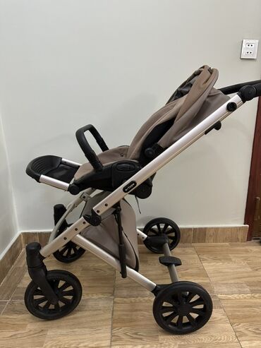 Uşaq arabası + körpə avtomobil oturacağı dəsti - Tip: transformerlə 2‑də‑1/3‑də‑1 sistem (körpə oturacağı/ana qucağı və gəzinti bloku) - Rəng: boz–açıq boz tonlarda, neytral dizayn - Çərçivə: yüng...