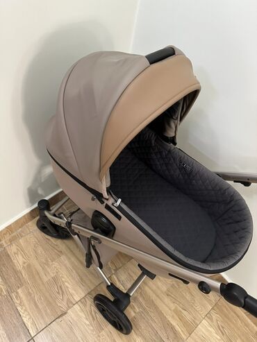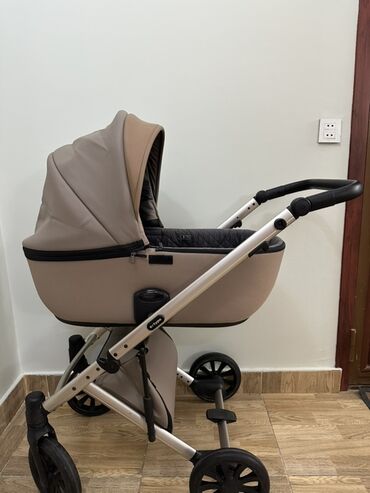 Uşaq arabası – 2‑in‑1 modul sistem - Rəng: bej/qızılı tonlarda, şassi gümüşü. - Dəst: portbebe (körpə beşiyi) və oturacaq bloku dəyişdirilə bilən modul kimi. - Çərçivə: yüngül və möhkəm alüminium ...