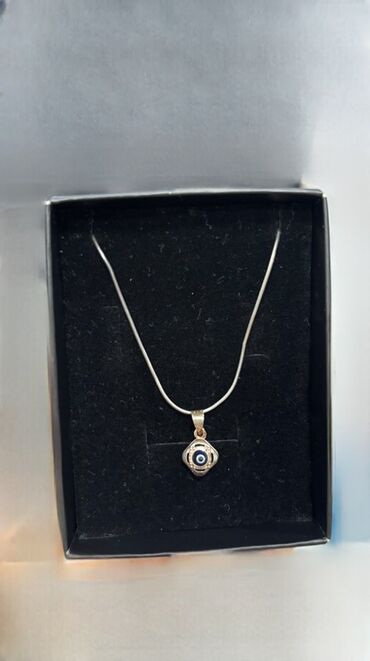 925 Əyar Gümüş zəncir və “nazar” (göz muncuğu) kulon dəsti