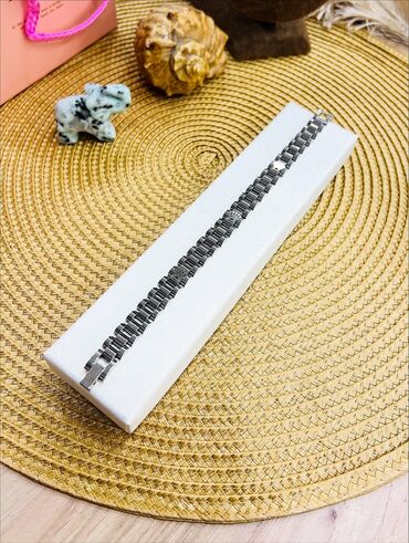 925 əyar gümüş kişi/qadın bilərziyi - Material: 925 ayar sterling gümüş (kiliddə “925” damğası mövcuddur) - Zəncir forması: dekorativ halqalarla bağlı, rellefli modul həlqələr - Rəng: parlaq gümüş...