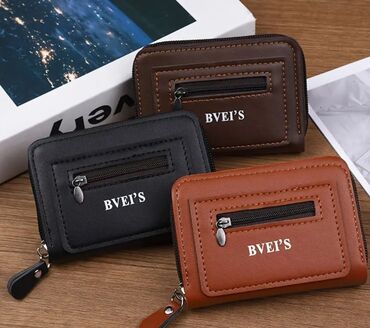 Kişilər üçün kompakt kartlıq/cüzdan - Marka yazısı: BVEI’S - Rənglər: qara, tünd qəhvəyi, karamel (3 rəng) - Material görüntüsü: dəri effektli, zərif tikiş detalları - Ölçü formatı: ovucdaxili, ci...