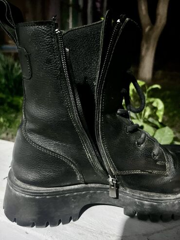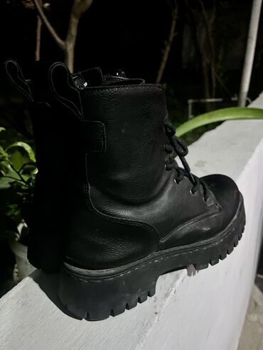 Qadınlar üçün dəbli qısa çəkmələr - Material: yumşaq nubuk , brend Sandro Vicari italiya - Rəng: tünd boz-bənövşəyi ton - Dizayn: ön hissədə geniş laklı dəri qayış və iri metal toka; tokada dekora...