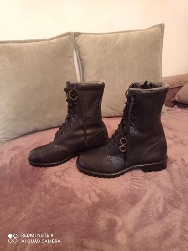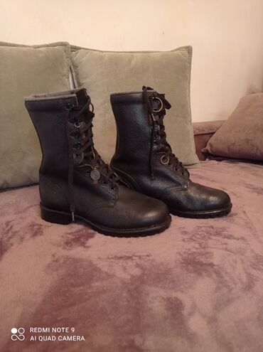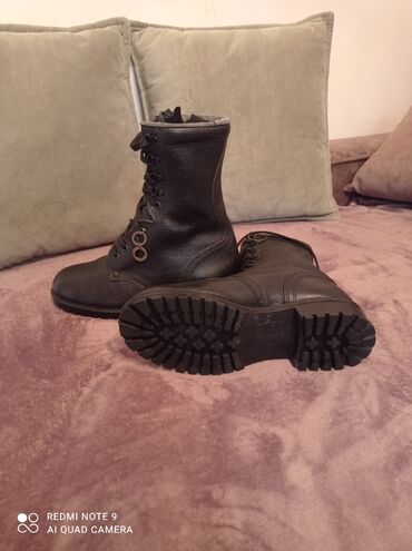 Qara dəri hərbi/trekkinq üslublu bağlamaqlı çəkmələr