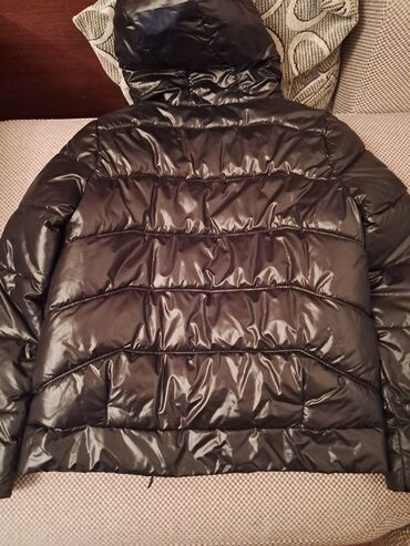 Yenidir.Cəmi 1 dəfə geyinilib,L razmer(böyük olduğu üçün satılır) Qısa model qara şişmə gödəkçə - Material: parıltılı, suya davamlı sintetik üst qat, içi isti dolguludur - Rəng: klassik qara - Diz...