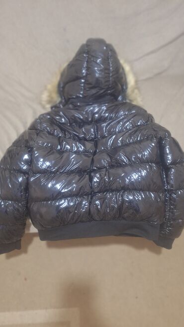 Moncler qış gödəkçəsi - Rəng: qara, parlaq material - Model: qısa “puffer” tipli, quilted tikili - Kapüşon: kənarı süni/xəz tük detallı kapüşon (çıxarıla bilən kimi görünür), ön hissədə əlavə qoru...
