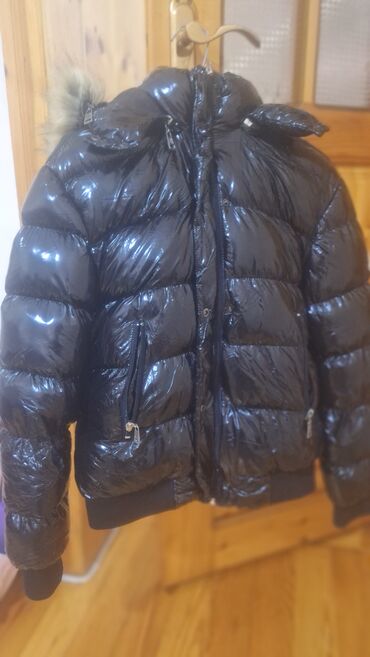 Yenidir.Cəmi 1 dəfə geyinilib,L razmer(böyük olduğu üçün satılır) Qısa model qara şişmə gödəkçə - Material: parıltılı, suya davamlı sintetik üst qat, içi isti dolguludur - Rəng: klassik qara - Diz...