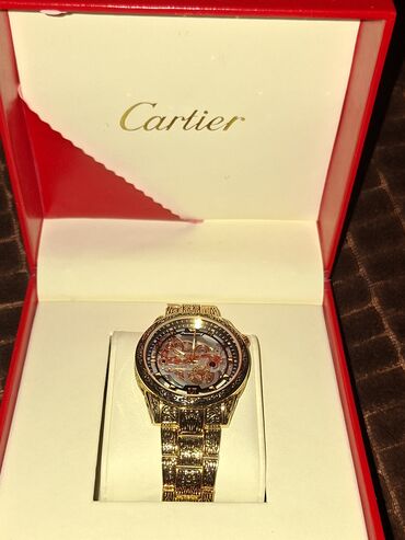 - Qutusu: qırmızı rəngli, içi krem tonlu, üzərində “Cartier” yazılı qutu ilə