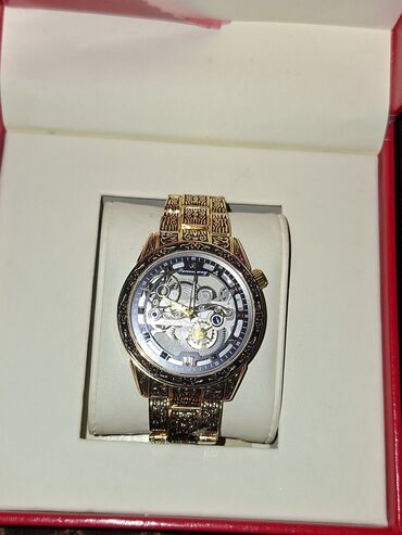 - Korpus və qolbaq: qızılı rəng, naxışlı metal korpus və metal qolbaq