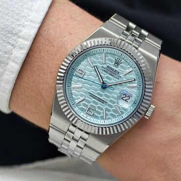 Rolex Oyster Perpetual Datejust qol saatı - Korpus: parlaq polad, yivli bezel - Siferblat: dərin mavi rəng, baton indekslər, saat-minut-saniyə oxları - Tarix funksiyası: saat 3 mövqeyində, Cyclops...