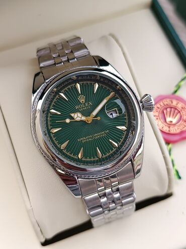 Rolex avtomatik saat – paslanmayan poladdan korpus və Jubilee tipli polad qolbaq. Yaşıl və tünd mavi rəngli günəş şüası teksturalı siferblat variantları. Xüsusiyyətlər: - Avtomatik mexanizm, şəffa...