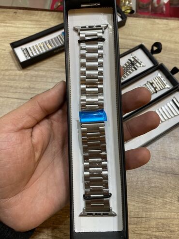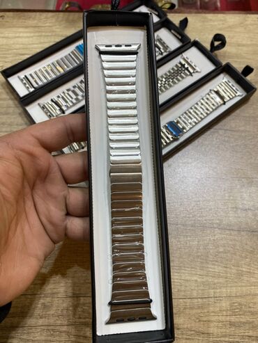 Metal saat kəmərləri – Apple Watch üçün - Material: paslanmayan polad (çoxnövlü halqalı/lenkli modellər) - Rəng: gümüşü (satin və parlaq bitirmə kombinasiyaları) - Uyğunluq: Apple Watch adapterlər...