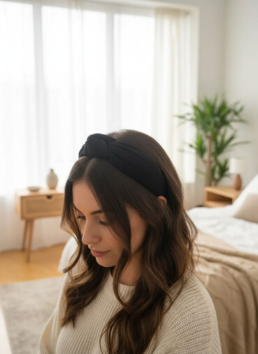 Qadın saç bantları – 2 ədəd set - Model 1: Qırmızı və göy rənglərin kontrastı ilə, ağ naxışlı parçadan hazırlanmış, ortası düyünlü sərt saç halqası. Kənarları yumşaq parça ilə örtülüb, başda rahat...