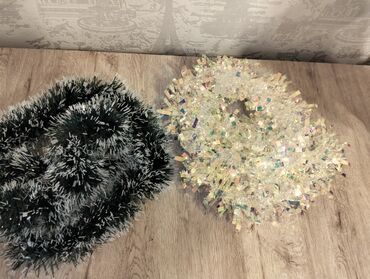 - Əlavə bəzəklər: 2 ədəd parıltılı milad çələngi/yağış bəzəyi – biri tünd yaşıl-ağ, digəri şəffaf-irizə effektli.