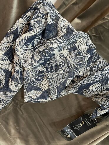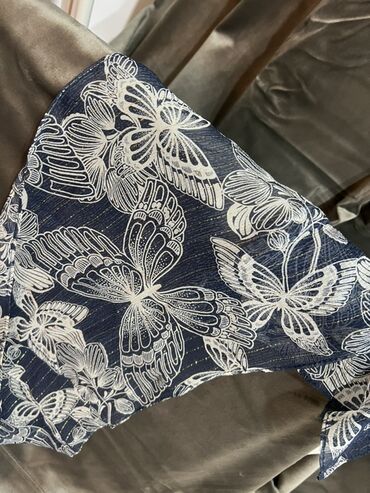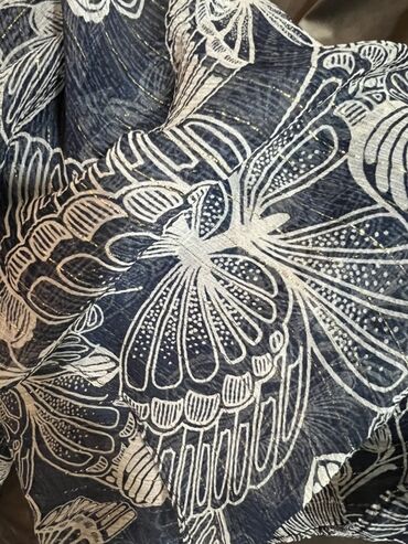 Mavi rəngli, kəpənək naxışlı yay şərfi/şalı