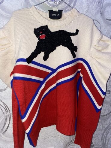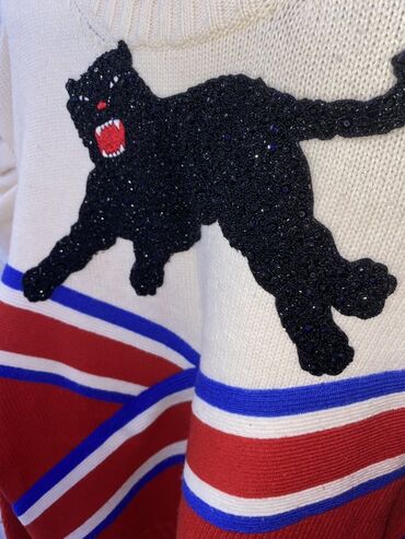 Qara rəngli, yüksək boğazlı trikotaj sviter. Ön hissədə 6 ədəd rəngli tüklü aplikasiya: yuxarı sırada 2 ədəd mavi, ortada 2 ədəd narıncı, aşağıda 2 ədəd sarı “pompon” görünüşlü dekor. Aplikasiyalar...