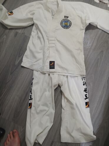 ITF Taekwon-Do forması – Sasung brendi - Komplekt: yuxarı (caket) və şalvar - Rəng: ağ - Material: nəfəsalan, möhkəm toxuma (döyüş və məşqlər üçün rahat) - Üst hissə: döşdə ITF loqosu və nişanlar,...
