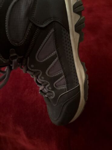 Turist/trekkinq ayaqqabısı – boz-qara rəng kombinində, yüksək boğazlı model. Sürüşməyə davamlı qalın protektorlu rezin altlıq, amortizasiya verən ara qat və möhkəm yan panellər. Nəfəsalan tekstil və dayanıqlı süni dəri üst hissə, gücləndirilmiş burun və daban. Klassik bağlama sistemi, rahat yastıqlı dil və daban hissəsi. Şəhər gəzintisi, yüngül yürüş və təbiət yürüşləri üçün uyğundur. Uniseks dizayn. rəng: tünd boz/qartal boz. Materiallar: tekstil + süni dəri, rezin altlıq. Şaquli və yan tikişlərlə möhkəmləndirilmiş konstruksiya.
