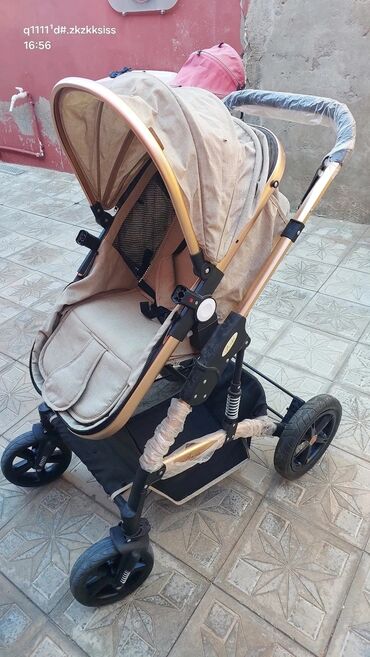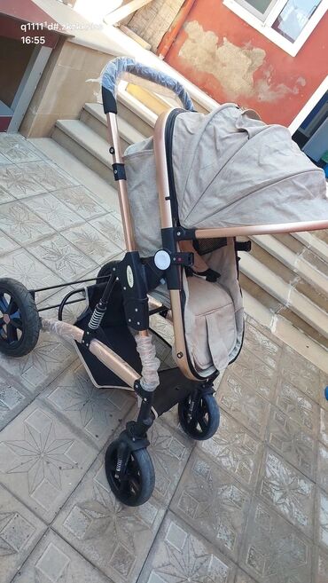 Bej rəngdə, qızılı rəngli çərçivəyə malik, tənzimlənən günəşlikli uniseks uşaq arabası. Arabanın oturacaq hissəsi tənzimlənə bilən uzanma funksiyasına malikdir. Döşək materialı rahatlığı təmin edir və təmizlənməsi asandır. Arabada uşağın təhlükəsizliyini təmin edən təhlükəsizlik kəmərləri var. Təkərlər möhkəm materialdan hazırlanıb və hamar hərəkəti təmin edir. Alt hissəsində əşyalar üçün geniş səbət yerləşir. Bu araba həm şəhər gəzintiləri, həm də uzun məsafəli səyahətlər üçün uyğundur.