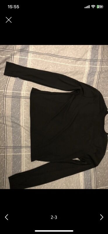 Qara rəngli qadın köynəyi. Bu köynək klassik yaxalıq və düyməli bağlamaya malikdir. Arxa hissəsində büzməli detallar var ki, bu da ona müasir və zərif görünüş verir. Uzun qolları və geniş kəsimi ra...