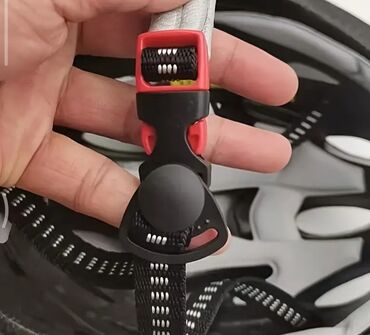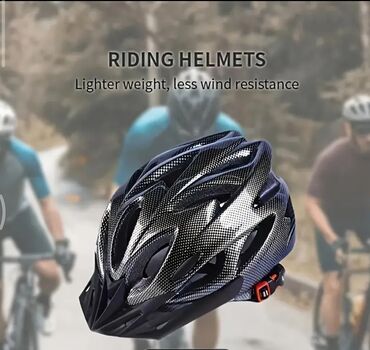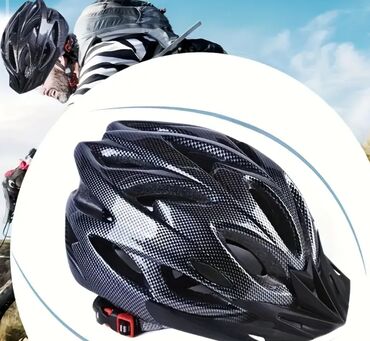 Nəfəs ala bilən havalandırma dəlikləri və tənzimlənən kəmərləri olan velosiped dəbilqəsi. Qara rəngdə və qara-ağ damalı naxışlı dizaynı ilə velosiped sürərkən istifadəçinin başını qorumaq üçün nəzə...