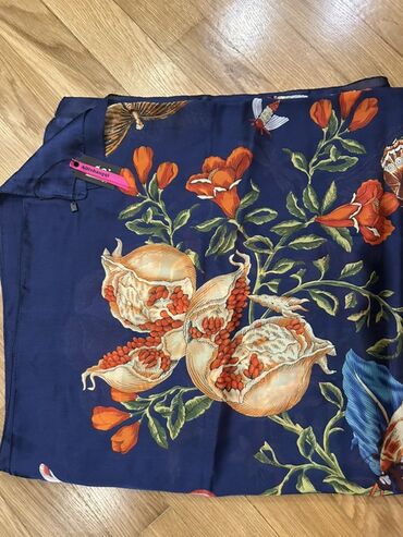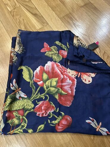 Zərif yaylıq/şərf – tünd göy fon üzərində botanika motivləri