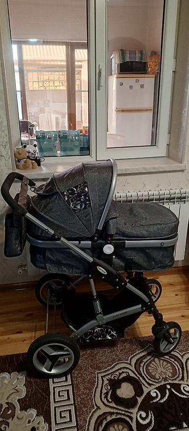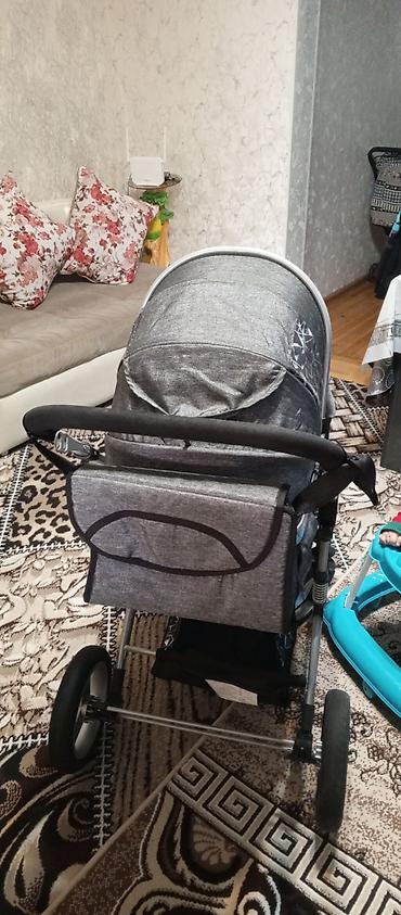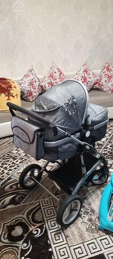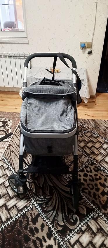 Uşaq arabası – boz rəng, çoxfunksiyalı beşik-liu̧lə tip.