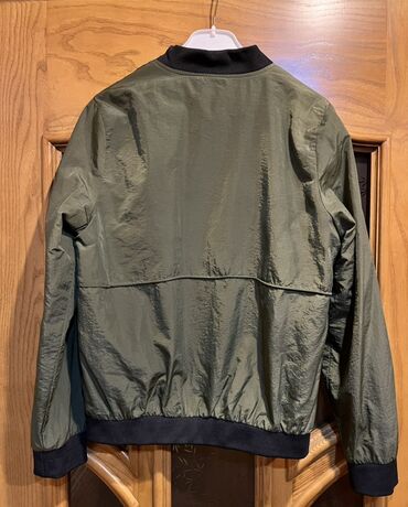 Brend: Reserved – kişilər üçün yüngül küləkkeş gödəkçə - Rəng: tünd göy/qartal qara tonlarda, kontrast qəhvəyi yaxalıq və iç hissə - Material: nazik, külək və yüngül yağışı saxlayan sintetik parça...30 AZN