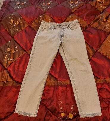 ZARA kişi cins şalvarı EUR44 - Model: Light Wash (açıq mavi), klassik beş ciblə - Kəsim: Düz kəsimə yaxın rahat siluet - Bel: Standart bel, kəmər keçiriciləri var - Bağlanma: Metal düymə və fermu...