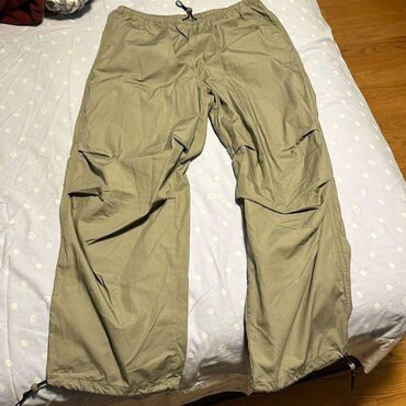 - Zeytun-yaşıl yüngül şalvar: elastik bel və tənzimlənən iplər, balaqda dartma bəndləri, diz hissəsində tikiş detalları. Rahat kəsim, səyahət və gündəlik istifadə üçün funksional.