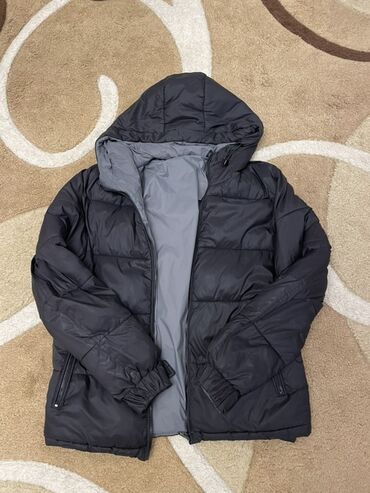 İsti qış gödəkçəsi – iki tərəfli model - Rənglər: bir tərəfi qara, digər tərəfi boz - Üslub: idman üslubunda, kapüşonlu - Qara tərəfdə çiyin və qollarda 3 zolaq detalları - Boz tərəf tikməli (quil...