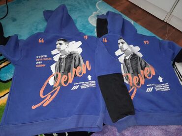 - Svitşot: kapüşonlu, ön və arxa tərəfdə “Seven” printi; arxada qrafik illüstrasiya və mətnlər. Daxili hissə yumşaq, flis astarlı.