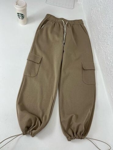 Bej rəngli unisex cargo idman şalvarı - Parça: yumşaq, qalın və isti