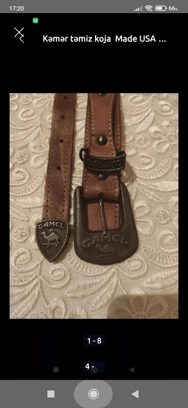 Camel brendinin orijinal kəməri 1970-cı il. 124 sm uzunluq. - Material: təbii dəri, qəhvəyi rəng - Tokası: metal, “CAMEL” loqosu və dəvə təsviri ilə relyefli - Üst tikişlər: kontrast rəngdə mö...Giriş•Qeydiyyat