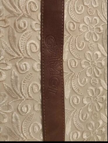 Camel brendinin orijinal kəməri 1970-cı il. 124 sm uzunluq. - Material: təbii dəri, qəhvəyi rəng - Tokası: metal, “CAMEL” loqosu və dəvə təsviri ilə relyefli - Üst tikişlər: kontrast rəngdə mö...
