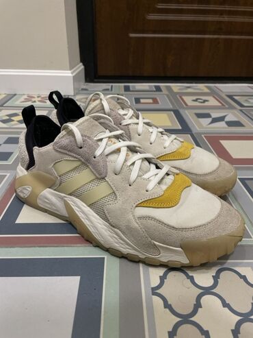 Krasovka tünd rəngdə və ağ altlıqla təqdim olunur. 39 razmer.Hər iki ayaqqabının yan tərəfində qara dəri üzərində boz rəngli zolaqlar var. Krossovkaların yan hissəsində rəngli loqo, daban hissəsind...