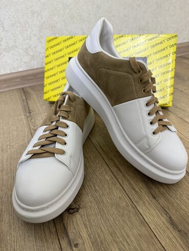 - Üst hissə: Kombinasiya – ön və burun hissəsi ağ hamar material, yan və dil hissələri süet toxumasında açıq qəhvəyi